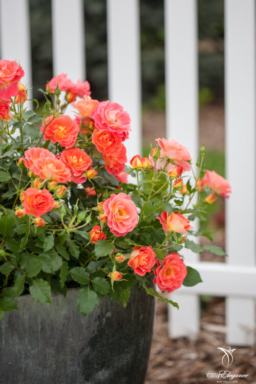 Incredible color, petite size and incredible disease resistance – what more could you want from a rose? Coral Cove is an everblooming gem with double blooms whose outer petals are dark pink that change to orange and finally to bright yellow at the center. The small, perfectly rounded form makes Coral Cove an outstanding informal hedge along a walkway or garden path. This own root rose was named the 2014 Best Shrub Rose by the Portland Rose Society.